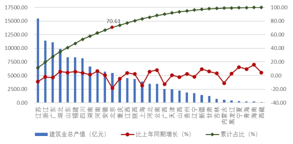 图1 2025 年上半年各地区建筑业总产值及其增长情况