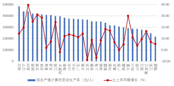 图5 2025 年上半年各地区建筑业劳动生产率及其增长情况